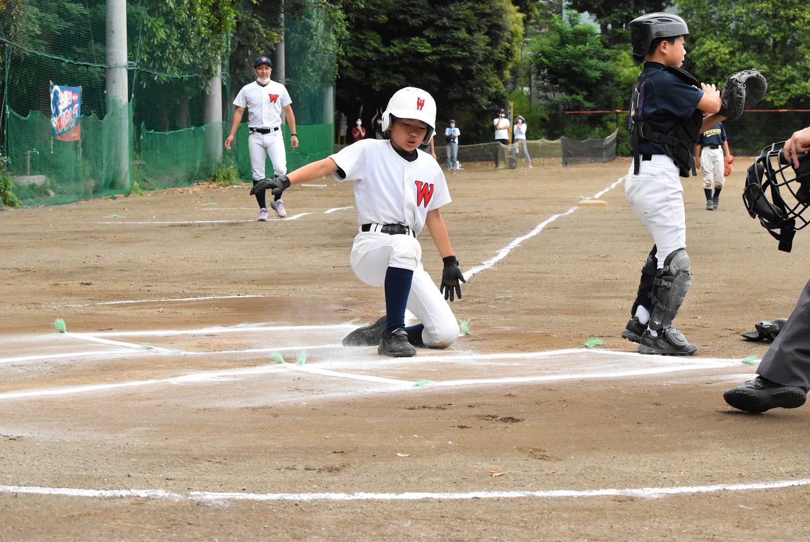 結果は10:0のコールド負けではあった。しかし、ジュニアフレンズから上がってきたメンバーの若さや経験値の無さを考慮すれば、予想以上に野球になっていたし、無安打の敗戦とは言え、逆に被安打は3本のみ、なんだか将来が楽しみな気分にさせてくれる試合であった。それに声出しの大きさでは負けていなかったぞ。それは試合後筆者と同じ評価が、連盟本部や審判からも漏れ聞こえてきたんである。